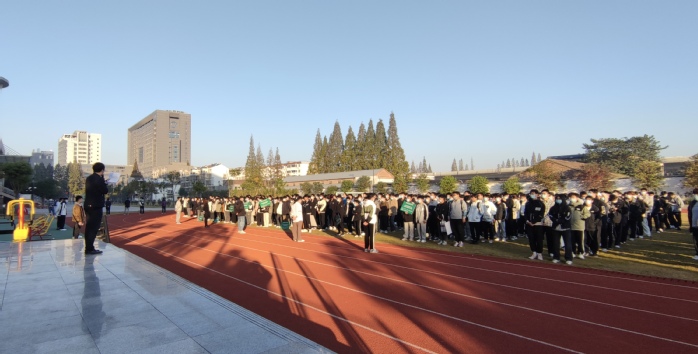 10月19日早上7点,交通学院在东操场开展晨会教育,学生管理郝主任主讲。