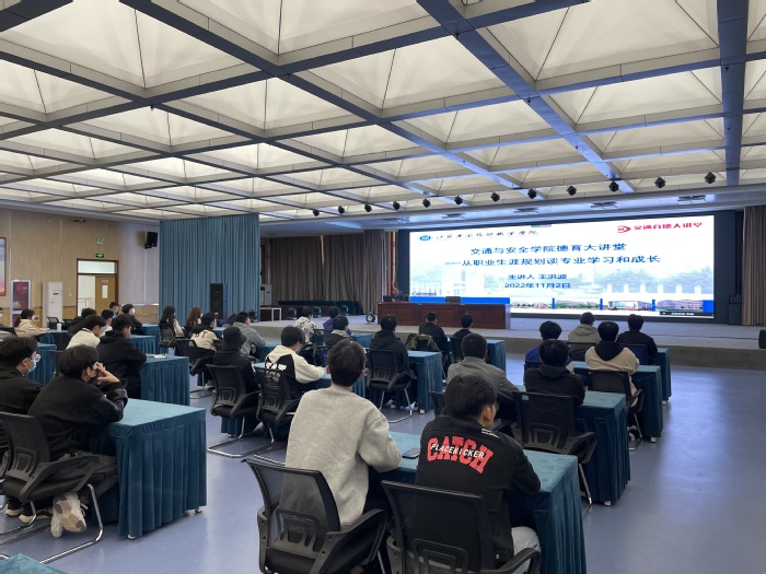 11月2日下午,在食堂五楼大学生活动中心,交通与安全学院“交通育德大讲堂”第二期开讲,本次讲座由王洪波院长主讲,讲座的主题是---从职业生涯规划谈专业学习和成长。