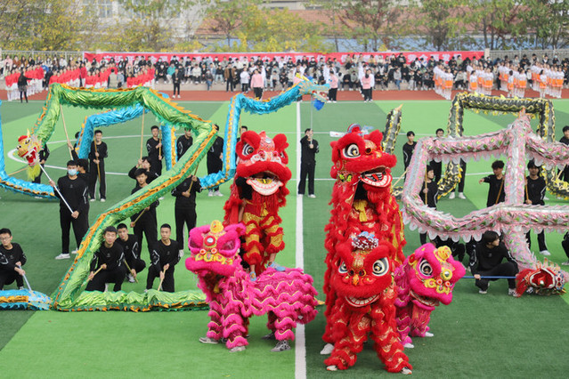 11月10日、11日,学校秋季运动会开幕式在贾汪校区东操场隆重举行。运动场上彩旗飘扬、横幅满挂,观众席上人声鼎沸、座无虚席。全体校领导出席开幕式,观看了开幕式的舞龙表演,开幕会由学工处黄清站处长主持。