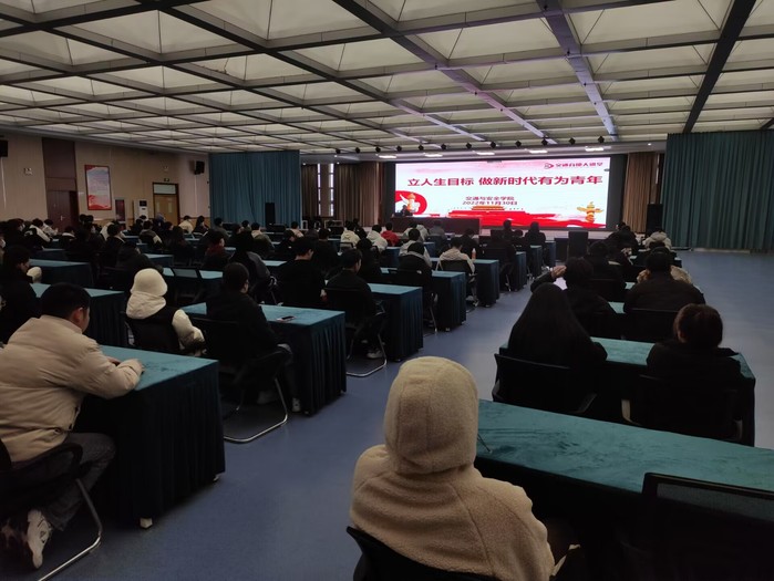11月30日,在交通与安全学院“交通育德大讲堂”系列讲座第四期开讲,本次讲座由郝旺林主任主讲,主题是---《立人生目标,做新时代有为青年》主题讲座。