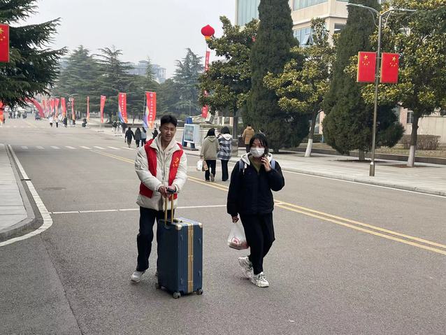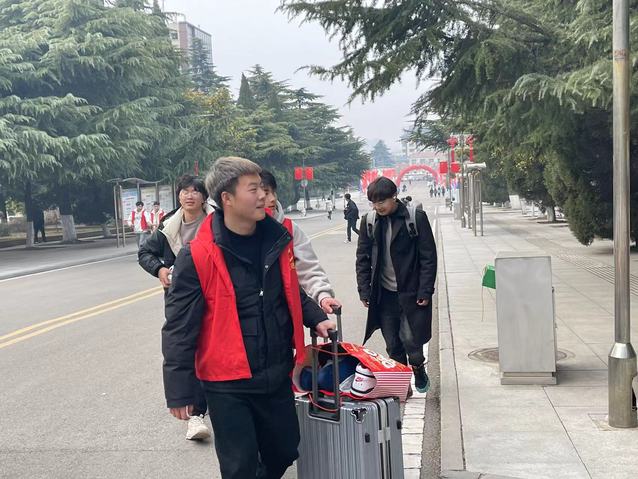 2月19日,交通贾汪的学生陆续返校,志愿者们在团学干部张海峰的带领下积极帮助同学们搬运行李。
