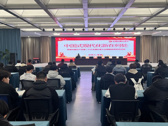 2月28日下午,在食堂五楼大学生活动中心交通与安全学院“交通育德大讲堂”系列讲座第五期开讲,本次讲座由张超老师主讲,主题是---《中国式现代化新在何处》主题讲座。