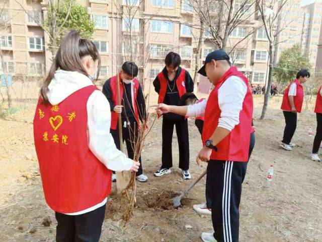 志愿者们在社区工作人员的指导下,种下一颗颗载满希望的树苗,为春天种一片绿色,为未来植一份希冀,在大自然中放松身心,释放压力,在劳动中体验耕耘与付出。