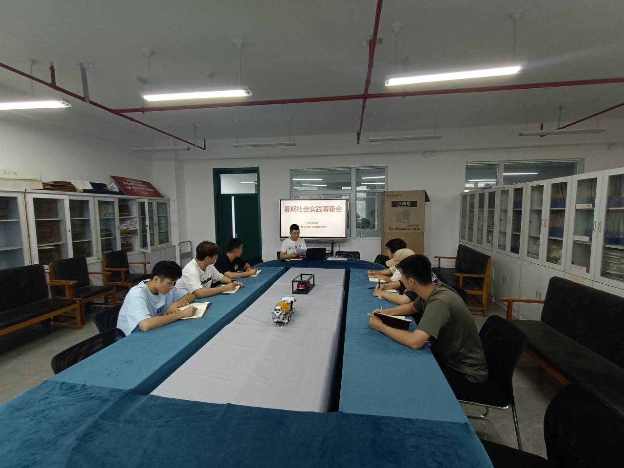 6月29日中午,“青春之歌”红色精神拓展团在图文楼707开展了2023年大学生暑期“三下乡”社会实践活动筹备活动,会议由社会实践团队指导老师张超主持,立项团队全体成员参加了本次会议。