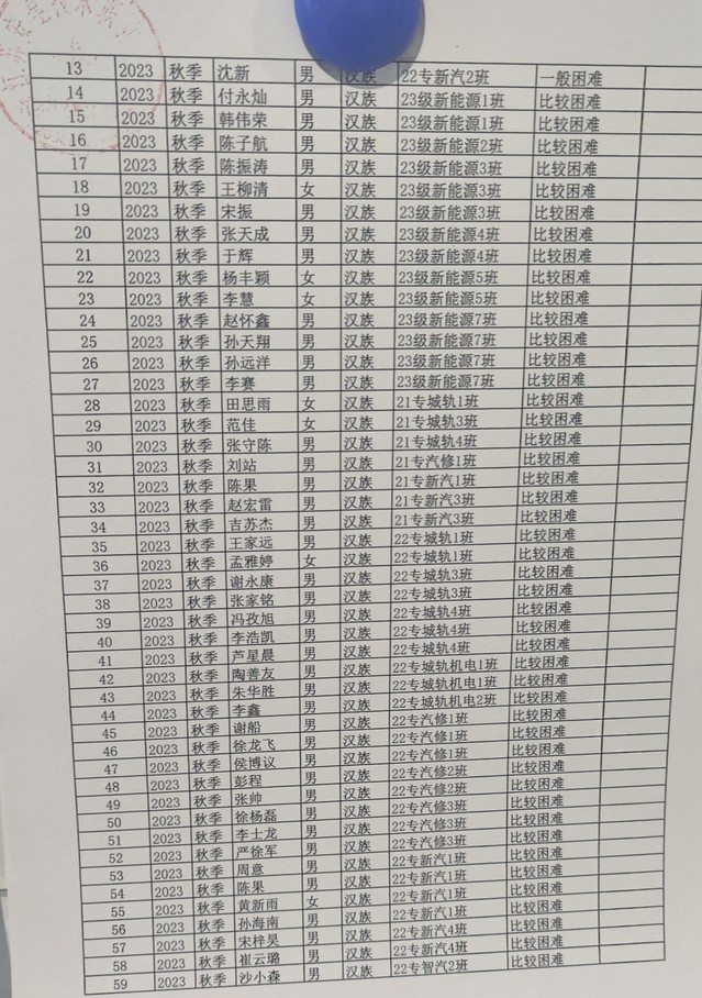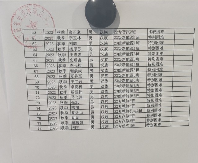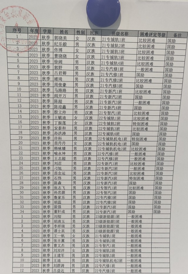 汽车与交通学院学院2023年秋季国家励志奖学金国家助学金公示名单