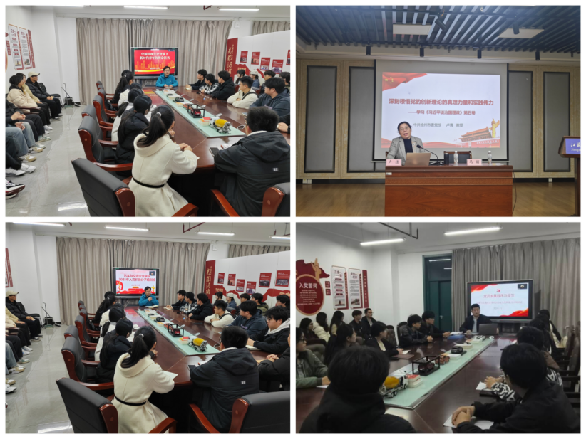 学院党总支副书记郝旺林出席2025年入党积极分子培训班开班式讲话并以《中国式现代化背景下新时代青年的使命担当》为主题,为入党积极分子全面解读党的二十大精神。徐州市委党校卢倩教授为积极分子们讲授《深刻领悟党的创新理论的真理力量和实践伟力——学习《习近平谈治国理政》第五卷》。学生党支部组织委员张超为积极分子讲解党员发展程序与规范,帮助积极分子进一步端正入党动机。
