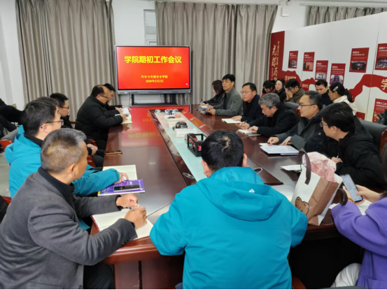 会议伊始,副院长王洪波围绕3+2项目、新能源汽车高水平专业群建设、人工智能、教学管理规范化、教学检查、教学能力比赛、智能体的应用等工作,要求大家明确目标,高质量完成各项工作。副书记郝旺林围绕学生报到、教材领取、收心教育、开学第一课、专转本、阅读活动、困难学生摸排、意识形态等工作进行部署,确保各项工作落细落实。