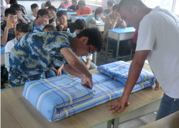| 金秋九月,桂花飘香。在饱含着收获的喜悦、孕育着无限希望与憧憬的初秋季节,我校迎来了2014级学子,我系新生在系领导和班主任老师们的带领下到贾汪校区进行了为期10天的军训,开始了他们新的人生征程。 他们带着激动、带着自豪、带着家长的殷切期望,更是带着他们对美好理想的憧憬和渴望,来到了徐机高职校。在新学期开始之前,他们需要有健康的身体,良好的心理素质和克服困难的勇气和决心,学校为他们准备的这次军训活动,不仅仅是为了提高他们的体质,更是为了培养他们坚韧不拔的意志,百折不挠的精神,宽广博爱的胸怀,艰苦奋斗的作风,军人生活的体验,团队合作的意识。 在艰苦的军训中,不管日晒还是高温,同学们都勇于坚持,把军训当成磨练自己的最佳机会,不放弃,不动摇,争创佳绩,享受军训,磨练意志!在内务整理比赛中,完全按军训内务规定进行学习、整理,对被子的折叠、位置、床铺整理、生活用品的摆放、鞋的规范放置、室内整体清洁程度都有严格的要求。同学们能够相互竞争、配合,完成任务。通过评比引导他们养成良好的生活习惯和生活作风。 9月7日,军训结束,我系新生在开学典礼暨军训汇报大会上完成了他们军训的最后一课。 军训,培养了学生的爱国情操,磨练了意志品质,培养了吃苦耐劳的精神,养成团结协作的作风和积极向上的生活态度,是学生生活中的重要一课,从中的历练对他们在职校的生活乃至一生都会产生积极的影响。 文:周旺红 图:郝旺林