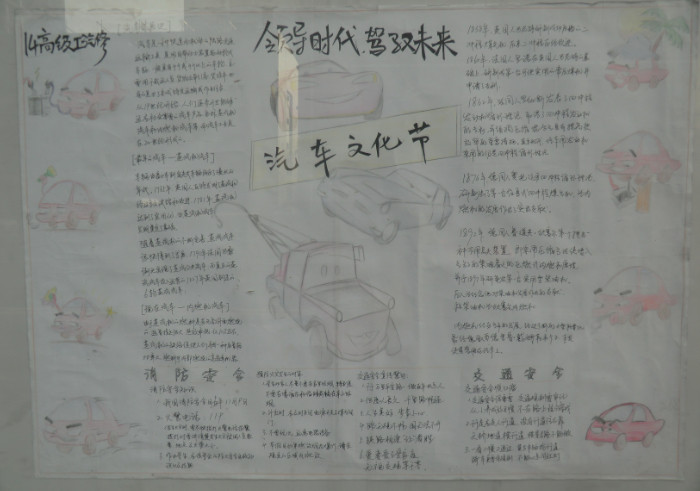 | 为丰富校园文化生活,激发学生的专业学习兴趣、培养学生“热爱专业、热爱学习、热爱职业”的学习态度,促进同学们养成良好的学习习惯,提高学习能力,汽车工程系在12月份举办为期一个月的第二届汽车文化节。 12月18日,本次汽车文化节活动之一的“汽车知识、安全”手抄报比赛圆满结束,经过评选,将部分较好的作品作了展示,同时也是对本届汽车文化节的宣传。 为做好手抄报,各班学生围绕“汽车知识、安全”主题,自己收集资料、设计版面、编辑内容。一张张色彩缤纷的手抄报交到学管办公室,各班手抄报风格迥异,尽显风采,不仅展示了学生们的才智,丰富学生的业余文化生活,也让学生们自身的专业文化素养得到了提高。 (文:周旺红 图:黄斌)