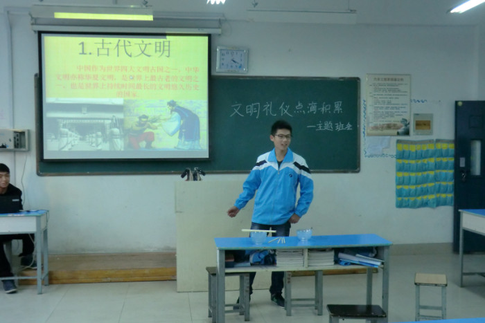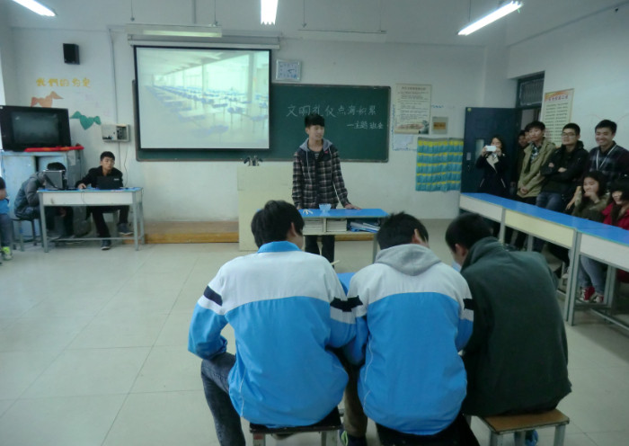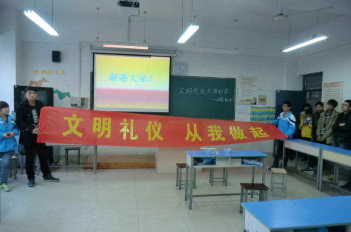 | 为加强德育的实效性,提高班级主题班会课质量与教育效果,增强学生文明意识,培养学生良好的行为习惯,11月12日下午,我系14高职汽修(3)班开展了以《文明礼仪,点滴积累》为题的主题班会观摩活动。系党支部书记马学建、全体班主任、部分学生代表参加观摩。 古人云:“不学礼,无以立”,此次主题班会课以“讲文明、知礼仪”这一主线贯穿整个活动,活动形式多样,内容丰富,有相声、小品、情景剧和现场签名活动等。对校园文明礼仪、社交礼仪等问题进行积极的思考与讨论。褒扬了健康文明、积极向上的社会公德,鞭笞了生活中的不文明的事例,使同学们受到一次深刻的教育。 通过在全系各班开展“文明礼仪”主题班会,并进行观摩活动,使同学们懂得了爱文明,讲礼仪,要从点滴做起,从身边做起,让文明的种子撒遍生活的每个角落。 (文:周旺红 图:葛放)