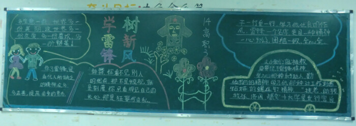 | 三月是文明礼貌月,为弘扬中华民族传统美德,引导学生积极传承雷锋精神,长期形成学雷锋的氛围,精心打造文化校园,我系组织各班出了一期以“学习雷锋精神”为主题的黑板报,3月10日,系学生会组织对黑板报内容进行了评比。 各班充分利用黑板报这块宣传阵地,对雷锋的生平事迹进行了全方位的报道,让本班同学能充分了解雷锋,学习雷锋,传承雷锋精神。黑板报内容有的介绍雷锋的生平;有的宣传雷锋的感人事迹;有的再现雷锋日记;有的收集雷锋名言录。形式多样,内容丰富多彩。 通过本次活动,使同学们更加全面地了解雷锋,坚持“从我做起,从身边的小事做起”,促进学生文明行为习惯的形成,为创建健康文明校园起到积极的推动作用。 (文:周旺红 图:葛放)