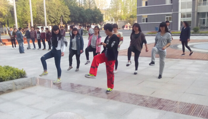| 为丰富学生课余生活,适应学生兴趣发展,我系成立了形式多样的学生社团。各社团利用课外活动时间,有序开展活动。每天下午,在教学楼前广场上,由学生自发组织的舞动青春社团,在音乐的节拍中,一群活力四射的身影,带来了青春活力与激情。 街舞,不同于古典舞的优雅,不同于民族舞的曼妙,不同于芭蕾舞的纯洁,以自己独特的魅力深深地吸引着年轻的学子。身体略微放松,脚步看似随意,却在音乐的节奏中,在四肢的协调配合中,舞出一帧帧动人的风采。 这样的活动不仅锻炼了同学们的勇气,给他们提供了一个展示自己的舞台;还丰富了学生生活,增添了校园风采。相信社团活动将会越办越好,同学们的能力会得到进一步的锻炼。 (文:周旺红图:葛放)