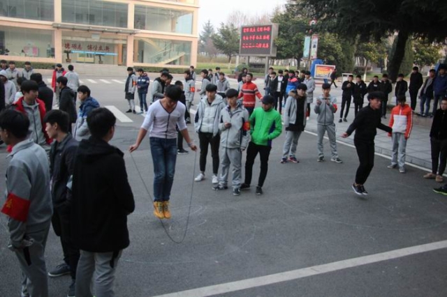 为更好的开展冬季体育运动,增强学生的体质,培养学生团结、拼搏的精神,12月15日下午,汽车工程系在教学楼前举行了一场紧张、激烈的跳绳比赛。全系100余名学生参加了比赛。