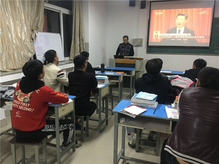 举世瞩目的中国共产党第十九次全国代表大会于10月18日上午在人民大会堂开幕。为及时把党中央的声音传达到全体同学心中,按照院学工处、团委要求,我系各班级利用当天晚自习时间在教室收看了《新闻联播》节目,认真学习了习近平总书记在开幕式上的报告及相关精神。