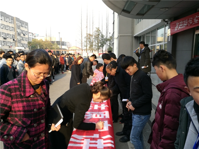 签名活动前,丁主任对我系学雷锋活动情况进行了通报,针对学生不文明行文整治活动提出了要求。系学生会副主席徐修正同学对全体同学提出了倡议,发出“向雷锋同志学习”的号召,学习雷锋的集体主义精神和钉子精神,最后,由系领导和班主任带头,全体学生在条幅上郑重地签上自己的名字,承诺将自觉履行要求,争做文明学生,创建文明班级、文明校园。