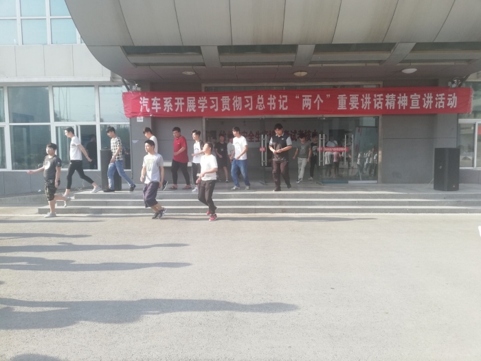 本次疏散演习前,我系专门召开班主任会议,布置安全疏散演练工作,并由各班组织开展了疏散演练及安全教育班会。当天早上7点10,警报响起,教师、学生会人员立即到达岗位,确保演练过程的安全,并引导学生有序快速疏散;正在教学楼教室里的学生立即从座位上起立,快速有序的奔向走廊;各班学生在指引下根据应急预案中的路线,沿指定楼梯口,有序撤离到空旷的场地,随后由各班主任清点人数,师生全部安全疏散完毕。