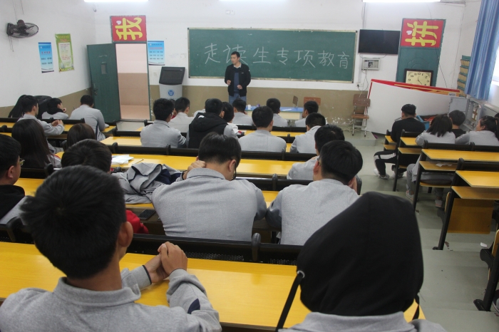 10月15日下午四点,汽车系全体走读生在108教室召开专项教育,学管老师王明瑞主持。