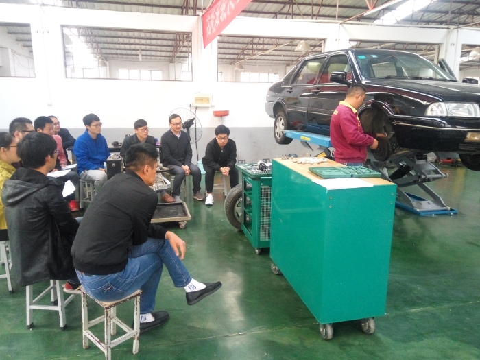 为提升教师实践教学能力,更好的开展专业课教学,10月16日下午4:00,汽车工程系汽车检测与维修教研室全体教师在B13汽车维修实训车间展开了维修技术交流活动,王真老师就汽车制动系统的检修进行了专业讲解。