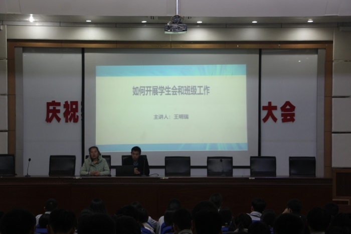 10月30晚7点我系在106会议室继续开展团学干部培训系列讲座之二——如何开展学生会和班级工作,全体学生会同学、各班级班长、团支书参加此次培训。此次活动由学管主任王冬萍主持,学管老师王明瑞主讲。