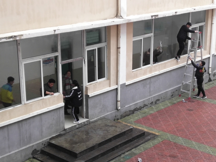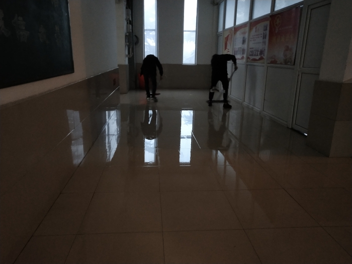 2月23日,汽车系贾汪校区全体学生会成员在马桂先老师的带领下对教学楼进行彻底打扫,为系部树立良好的形象。