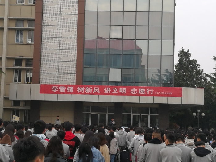 4月7日早,汽车工程系贾汪校区在系部楼前开展了“快乐学习,友好相处,做内心强大的人”主题晨会,本次会议由孙腾飞主持,17高职城轨(交协)班学生代表演艺主题,学管副主任郝旺林做一周时政和总结发言。汽车系全体班主任和1200名学生参加。