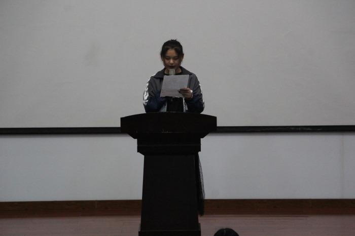 晚上七点,由学生会同学组织观众在106会议室观看比赛。其比赛要求演讲作品要励志,主题鲜明、文字简洁,能反映当代大学生积极向上的精神风貌和“青春、责任、奉献”的价值观和道德观;演讲过程中要求选手语言流畅、具有较强的感染力。每一位参赛人员用铿锵有力的声音打动这在座的的每一位观众。历史长河大浪淘沙,送走过多少岁月;时代画卷波澜壮阔,记载了无数英杰。忆往昔,按卷沉思,竟难忘那燕园的红墙;竟难忘那十月的潮思;竟难忘“还我青岛,还我中华”的竞相奔走,击博耳鼓的阵阵呼声。风云为之含悲,草木为之变色,泰山为之震动。
