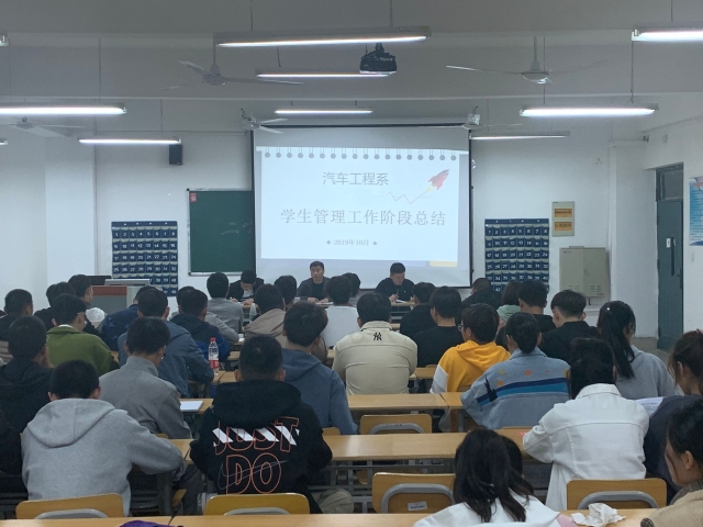 为更好的总结规划学生管理工作,对前段时间学生工作中涌现出来的优秀个人给予表彰,汽车工程系于10月21日晚,在教学楼508教室举行学生管理工作阶段总结会议。学管丁主任、辅导员潘彬老师、张超老师和全体学生干部出席了本次会议。