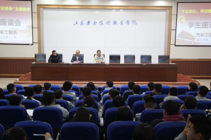 11月5日晚7点,汽车工程系贾汪校区各班级班长、团支书、学习委员共计111名学生代表在106会议室参加“不忘初心、牢记使命”学生座谈会,本次会议由学管副主任王冬萍主持,党支部书记张允志出席并发表讲话。