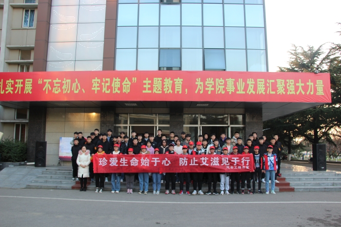 为了引导青年学生主动掌握预防艾滋病常识,提升大学生的自我保护意识和能力。我系于12月1日在系门口举行“预防艾滋病”宣传活动,本次活动由汽车系全体同学参加。