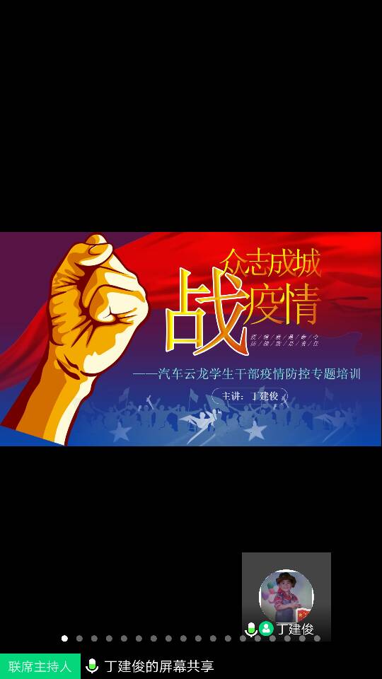 为了进一步落实学院关于疫情防控工作的指示精神,提升学生干部群体在疫情防控工作中的担当意识、责任意识。汽车工程系于4月13日利用腾讯会议平台召开学生干部疫情防控工作例会。汽车系丁主任、两位辅导员、学生会干部以及各班班长参加了此次会议。会上,丁主任带领大家观看了江苏省高校关于疫情防控相关文件,接着学习了苏安院防组〔2020〕42号文件《江苏安全技术职业学院疫情防控专项培训工作方案》,传达了学院防疫工作的具体要求,并特别强调严禁提前返校。他提出学生干部要提高疫情防疫知识,在学生群中充分发挥先锋模范作用,积极配合班主任、辅导员做好班级各项统计上报工作。