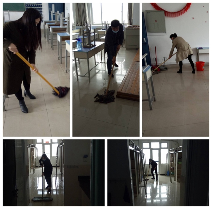 劳动现场,各位班主任尽职尽责,开窗通风、扫地、拖地、摆放桌椅、倾倒垃圾,大家没有叫苦叫累,充分发扬了汽车系优良的工作作风。