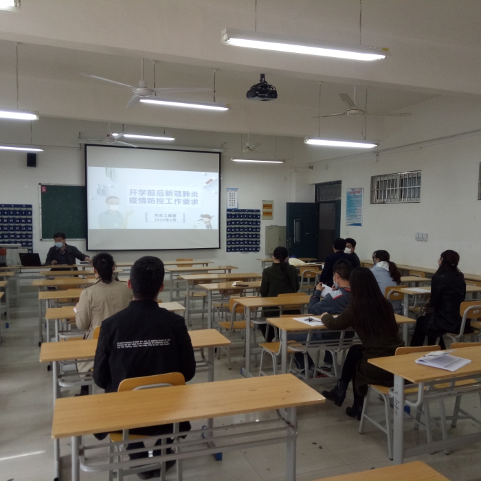 会上,丁主任围绕新冠肺炎基本知识、师生员工个人防护、学校防控管理、健康防护技能四个方面分别进行了详细讲解和介绍。丁主任指出,根据学院工作安排汽车系成立了疫情防控工作领导小组,建立组织指挥体系,制定了疫情防控工作应急预案,全力做好疫情防控工作。为全面掌握师生的健康信息,学院建立了全校师生网上填报系统,全面排查师生员工健康状况。