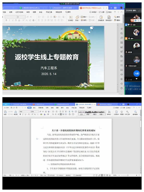 为了做好疫情防控期间学生教育和管理工作,5月14日汽车系组织召开线上专题教育,辅导员潘彬、张超以及返校的142名同学参加会议。