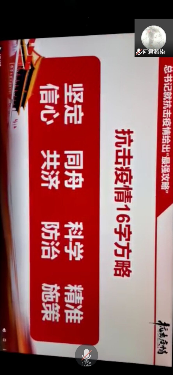 王老师以《新冠肺炎疫情预防指南》为题,从“认识新冠肺炎、个人防护、宿舍、教室防控管理、健康防护技能”四个方面作了全面、细致的讲解。专业性、针对性、实用性非常强,起到了很好的效果。