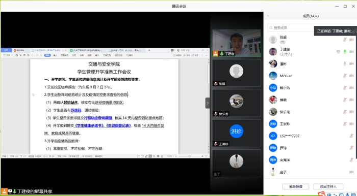 8月28日晚上,交通与安全学院召开新学期第一次班主任辅导员网络会议,会议由学生管理丁主任主持。