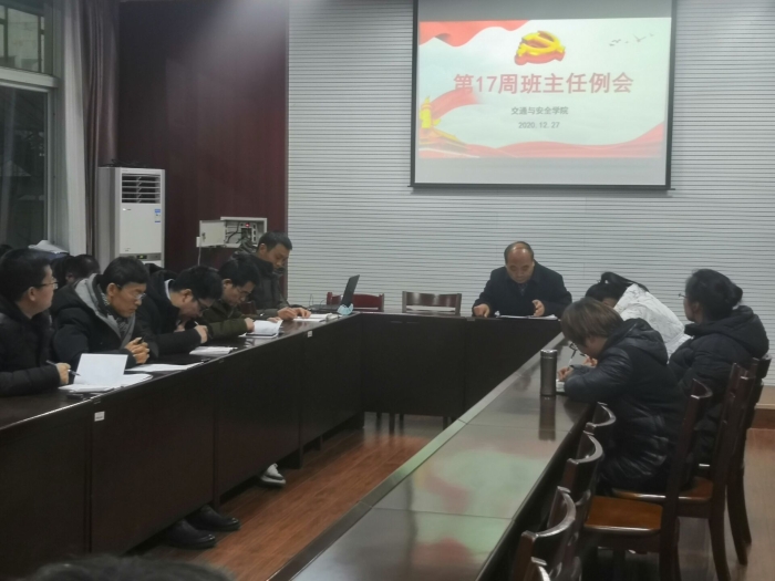 12月27日在B2楼202召开全体班主任例会,本次工作会议由学管老师王明瑞主持,党总支书记张允志出席会议并发表讲话。