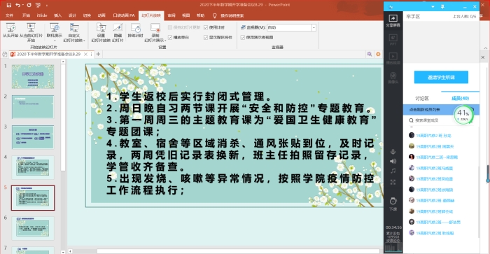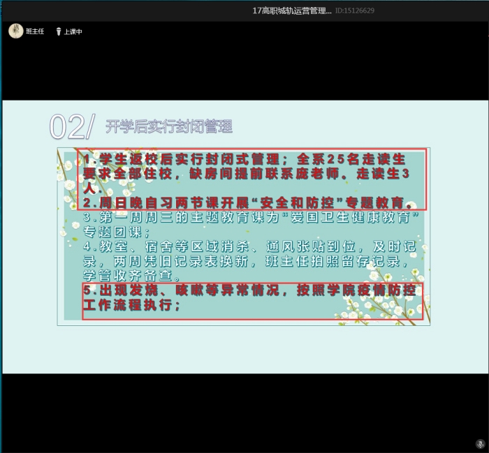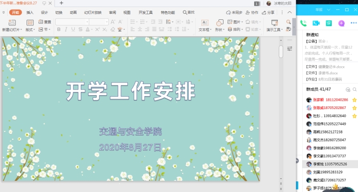 8月27日上午,学管主任王冬萍组织全体班主任线上参加学生工作会议。