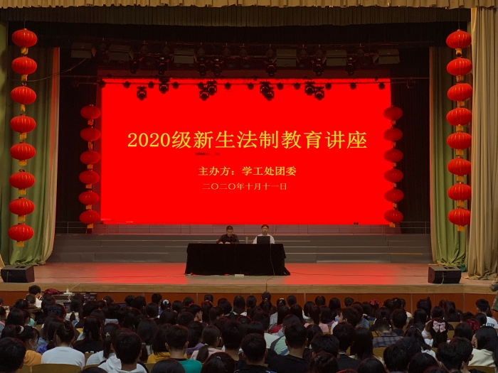 为增强20级新生的法律意识,提高他们的自我保护意识,做一个知法、守法的合格学生,营造文明、平安、和谐的安全校园,10月11日下午,我院举办了新生法制教育讲座。讲座由院团委闵有付同志主持,院学保处处长邹明主讲。我系2017级全体新生参加聆听。