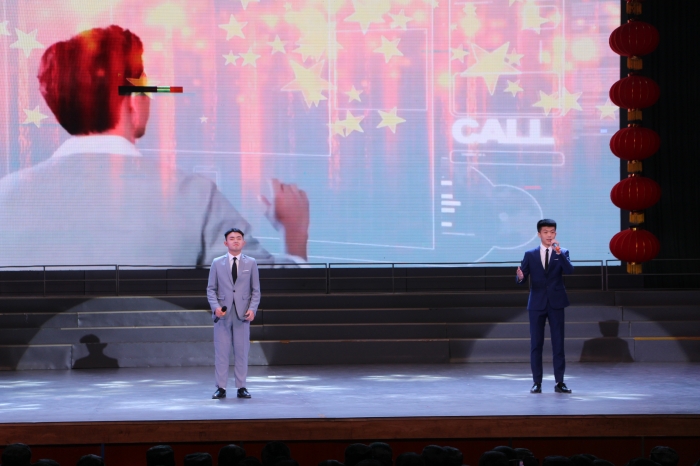 迎新晚会在嘹亮的国歌声中,拉开帷幕。本场汇演是新生的盛会,亦是学院的盛会。朝气蓬勃,不失严肃,节目编排多以展现青春风采,弘扬优秀传统文化为主题。利用戏曲、歌舞、小品等多种表演形式展现在舞台,引起台下观众视觉,听觉上的巨大冲击。最后汇演在青春洋溢的歌声中拉下帷幕。