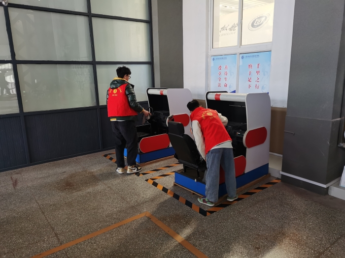按照要求到达安全体验馆后,体验馆老师给我们志愿者同学分配了各项工作任务,同学们,认真,高效,有序,有质量的完成了任务!并且老师给我们竖出了大拇指,并且给出了好评!