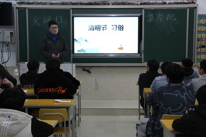 为了让同学们了解清明节传统文化,增强传统文化的认知,过一个文明健康的假期。交通与安全学院全体班主任于3月31日晚自习带领全体同学,举行以诵清明诗歌、扬民族文化暨落实孙书记节前六大工作要求为主题的班团课。