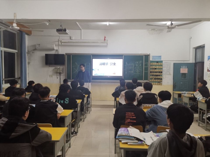 晚自习第一节课,交通与安全学院全体同学在各自班级观看新闻联播,了解国家大事。第二节课,班主任主持班团课,此次主题分为四个部分,第一清明节简介,第二清明节习俗,第三清明节祭扫,愿广大学生积极了解传统文化和习俗,根据新发展理念,文明祭祀,做一个德智体美劳全面发展的在校大学生。第四各班主任落实孙书记清明节专项要求,结合系部、班级实际情况,重点强调清明节前六大工作要求:1.清明节放假期间要做好个人防护,减少外出,避免人员聚集,如出省要履行报批,要掌握学生出行轨迹和时间,叮嘱注意个人防护。2.做好节假日期间交通安全,不乘坐无运输资质车辆。3.清明节后要严格落实出勤人数统计,一旦出现发热、腹泻等症状,应及时上报并及时就诊,落实因病缺课、病因追查和登记制度,实行“日报告”和“零报告”。4.学院关心关爱不回家学生,实行每日就寝签到制,突发事件有问题找值班老师及时处理。5.再次强调第十七届“挑战杯”江苏省选拔赛工作,要努力完成团委布置的任务,充分发挥每位同学的聪明才智,积极填报班级“奇思妙想”征集表助力大挑,周五之前上报电子稿。6.教育广大学生不参加封建迷信活动,不转发非官方信息,不传谣不信谣,对留校学生要做好宿舍、教室等场所通风清洁,关心关爱不回家学生。