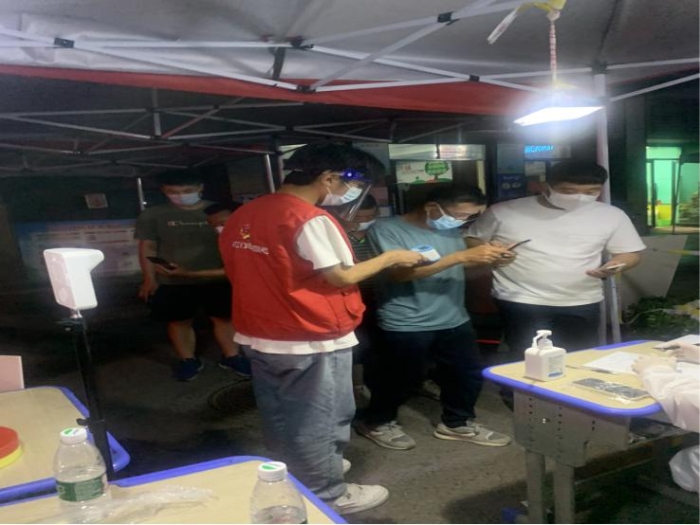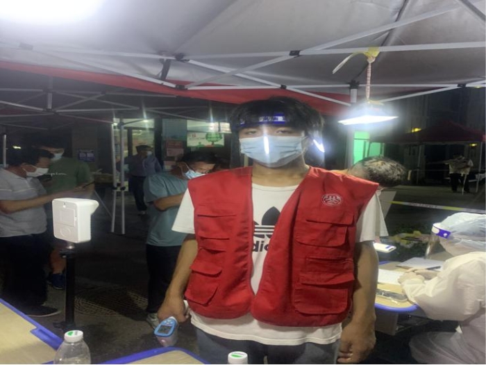 疫情防控,志愿先行。19汽修2班的金龙笛,团学干部,在疫情期间积极参与志愿者防疫活动,在和平壹号2期小区帮助本小区的人进行体温测量和登记核酸检测。