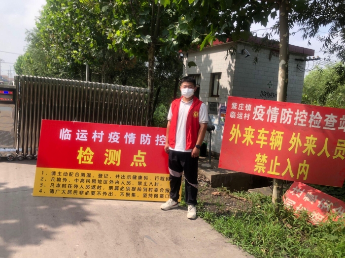 在2021年8月,19城市轨道交通运营管理二班的范雨琪学积极参与防疫活动,成为紫庄镇临运村疫情防控志愿者队伍中的一员。在成为志愿者期间,他主要主要负责的工作有登记外来人员的苏康码、健康码等。