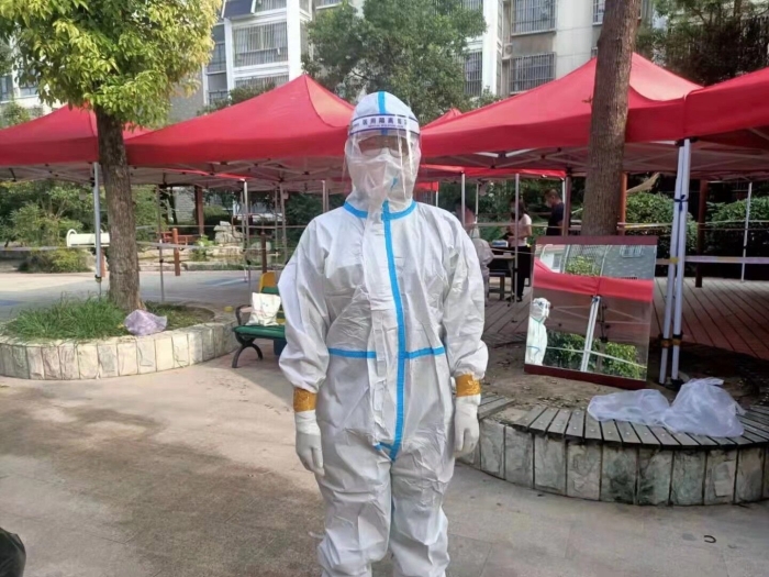 尽管在社区志愿服务的最后几天由于劳累,摔伤了胳膊,在医院进行包扎钢板加固,出院的第二天他又投入到新的“战场”。在徐州市核酸检测演练过程中,孙奇超作为云龙区的一名志愿者,积极参加核酸检测队伍,完满完成核酸检测任务。