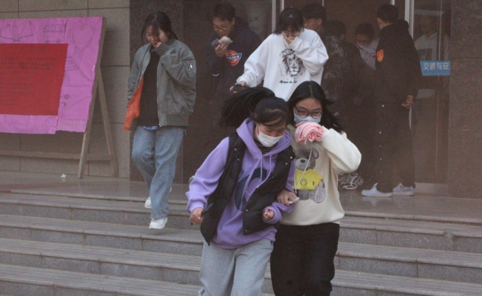 演习开始,硝烟四处飘起,消防警报响起,在模拟起火楼栋中,同学们有序疏散,逃离火场到达安全地带,给在场参观的同学示范了如何安全迅速的逃生。