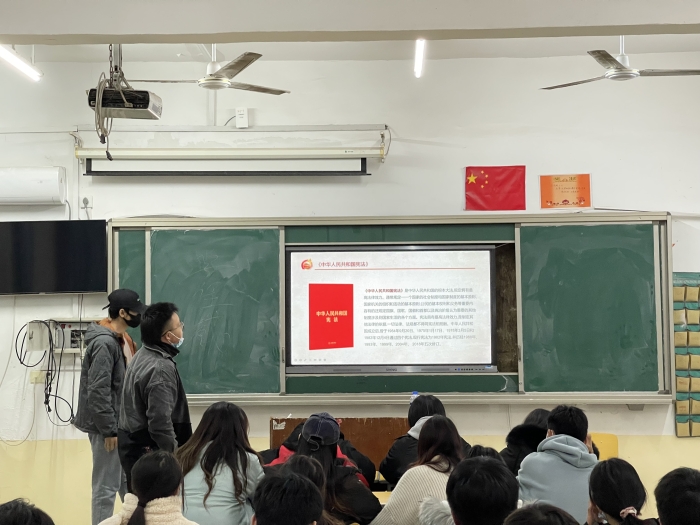 为了培养同学们的法律意识,增强遵纪守法的自觉性和运用法律维护自身合法权益的能力,营造和谐、文明的校园环境。交通与安全学院所有班级于12月1日开展了以“尊崇宪法,学习宪法”为主题的班团课。