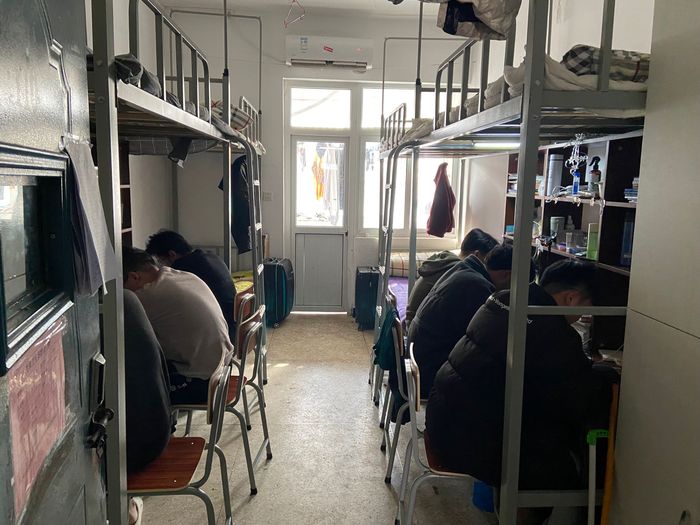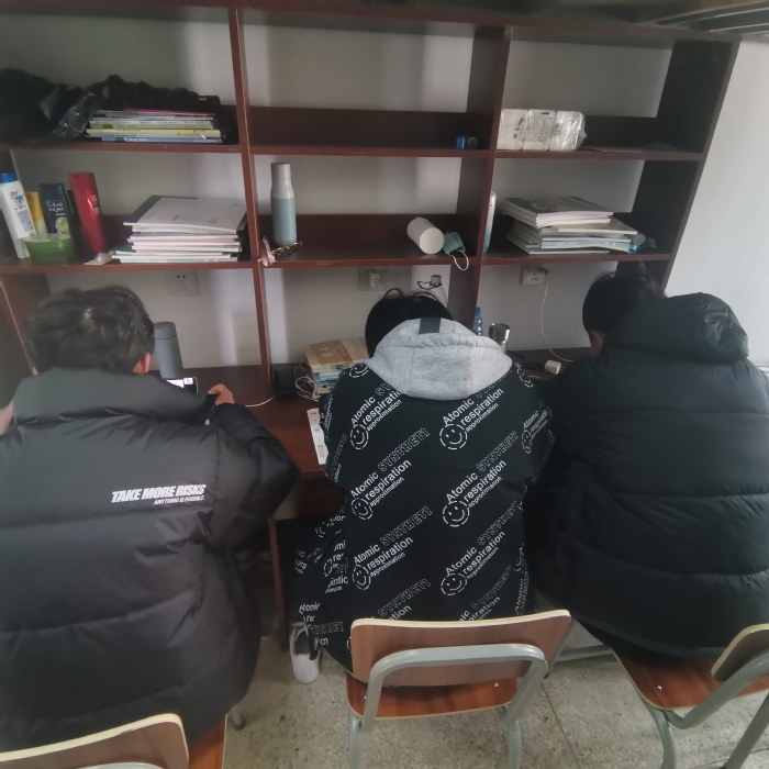 根据学校教学安排,学生返校前两周开展线上教学活动,2月24日上午,王明瑞老师和庞大宝老师深入5号楼宿舍检查学生上课情况。
