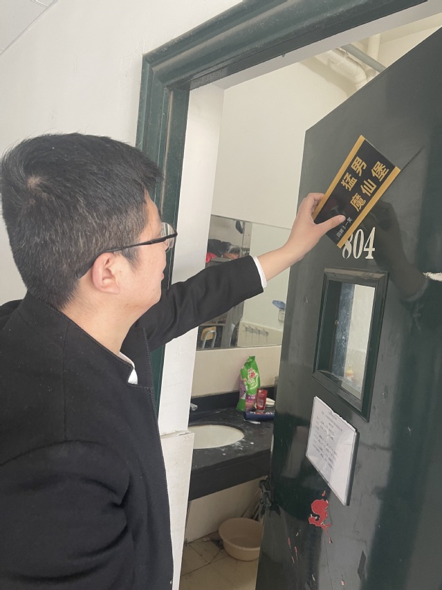 张超和王相康老师走进交通与安全学院的每一个男生宿舍,与同学们谈心谈话,了解同学们的近况,同时对一些重点宿舍,重点同学格外的进行了谈话和交流,确保每一位同学的身心健康。然后两位老师又在宿舍清理了一些不恰当的海报和贴纸,确保宿舍的安全稳定。